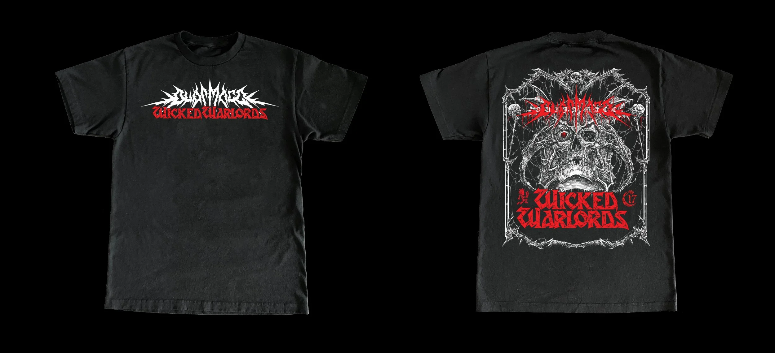 I WAS ASKED TO CREATE THE TOUR POSTER AND MERCH FOR HORRORCORE / TRAP ARTIST OUIJA MACC AND HIS 2022 “WICKED WARLORDS” TOUR. OUIJA AND HIS TEAM WANTED ME TO TAP INTO THE METAL FANTASY STYLE THAT I HELPED PIONEER DURING MY DAYS AS THE DESIGN DIRECTOR OF DEATH SAVES. WORKING WITH INDONESIAN METAL ARTIST MERZGRIND, I CAME UP WITH SOMETHING THAT DEFINITELY CAPTURED THAT VIBE. DARK, HEAVY AND HARDCORE!